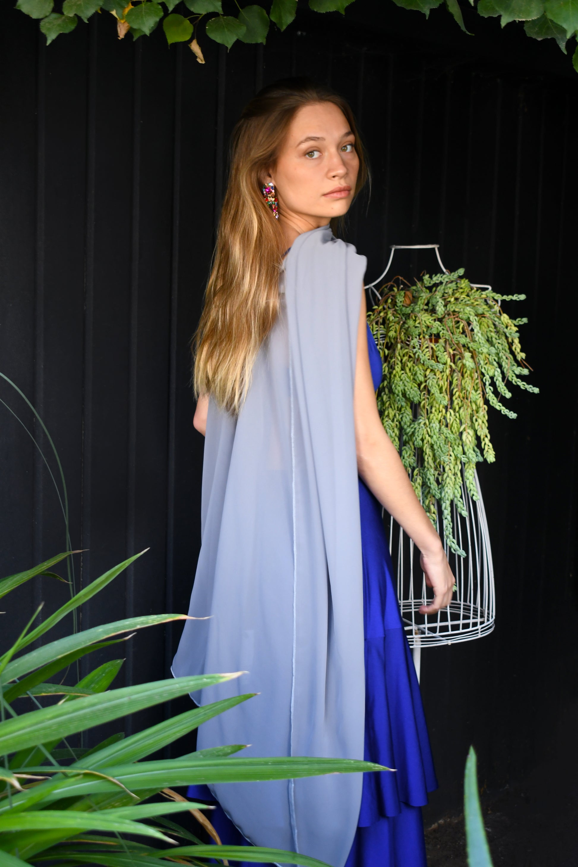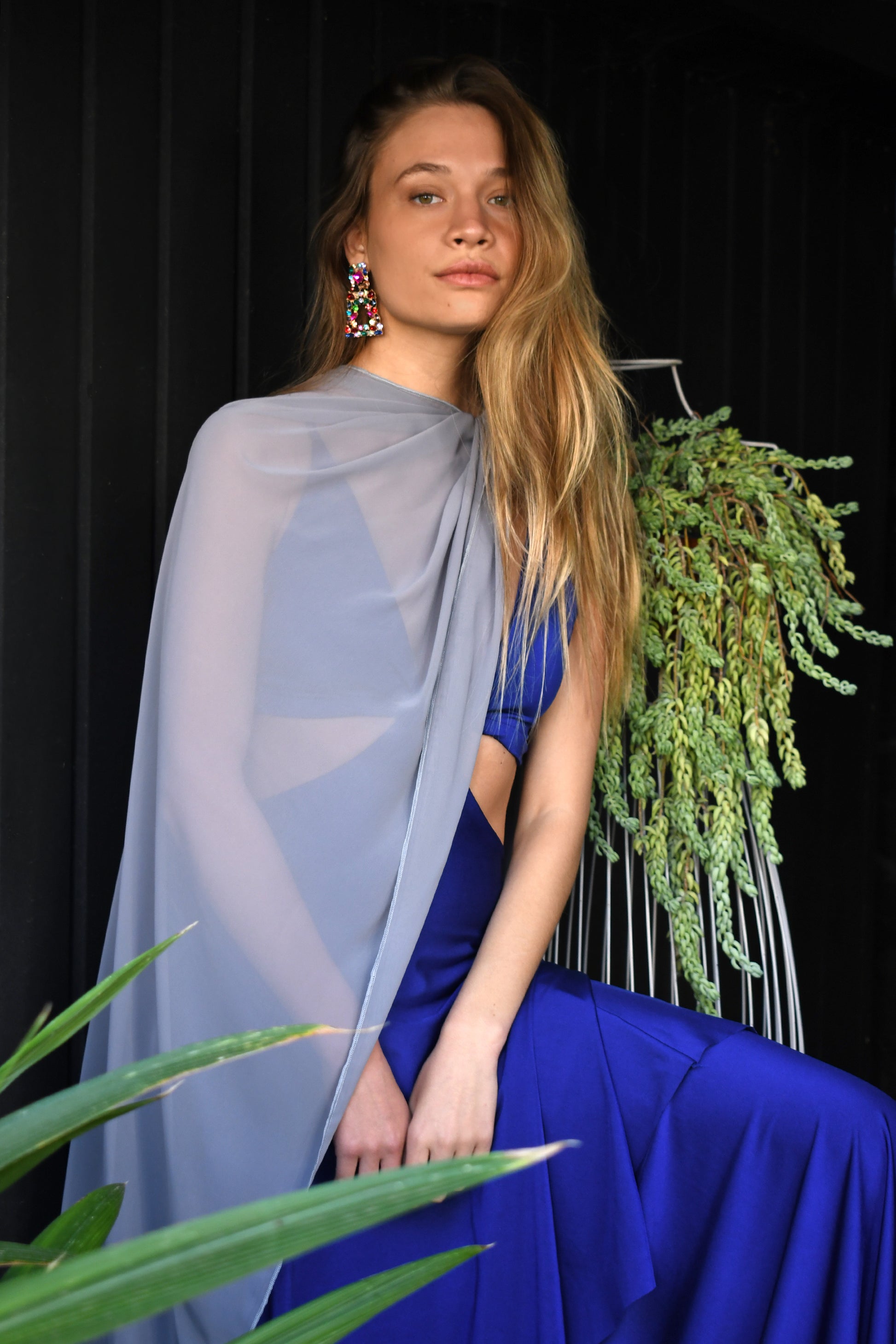 Inspirada en la fluidez de los templos antiguos y la feminidad de las diosas clásicas, la capa Grecia es una pieza liviana, elegante y decididamente única. Su diseño asimétrico, con cuello torcido, aporta un toque escultórico que la diferencia y eleva cualquier look.